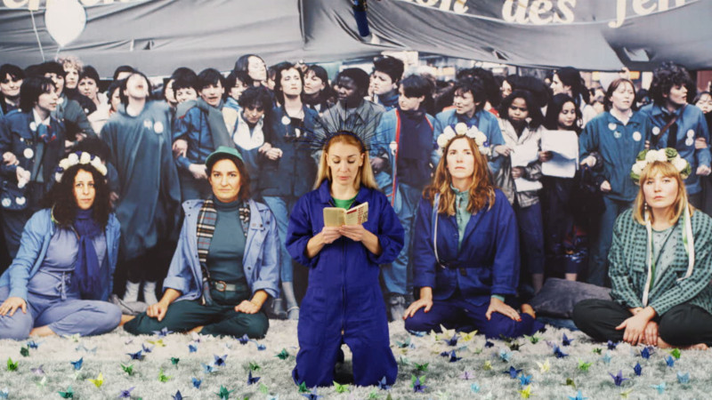 The film is built in visual layers, in which Inna is put back into old press shots. We work with large print photographs of actions of FEMEN, where we retouched Inna out. She appears in the same photograph, but she is real and can move in front of the photograph.